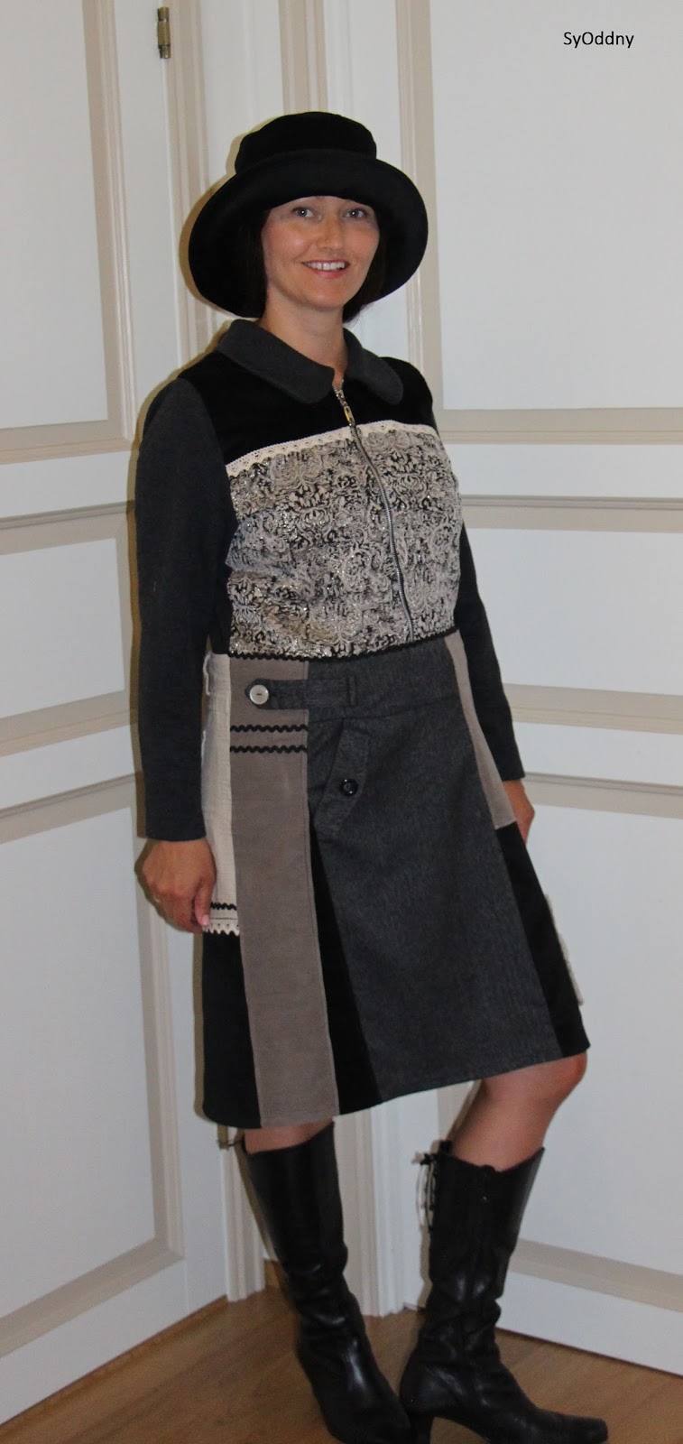 Deler frå ein tunika, kåpe og det svarte stoffet vart brukt til resten av skjørtet!