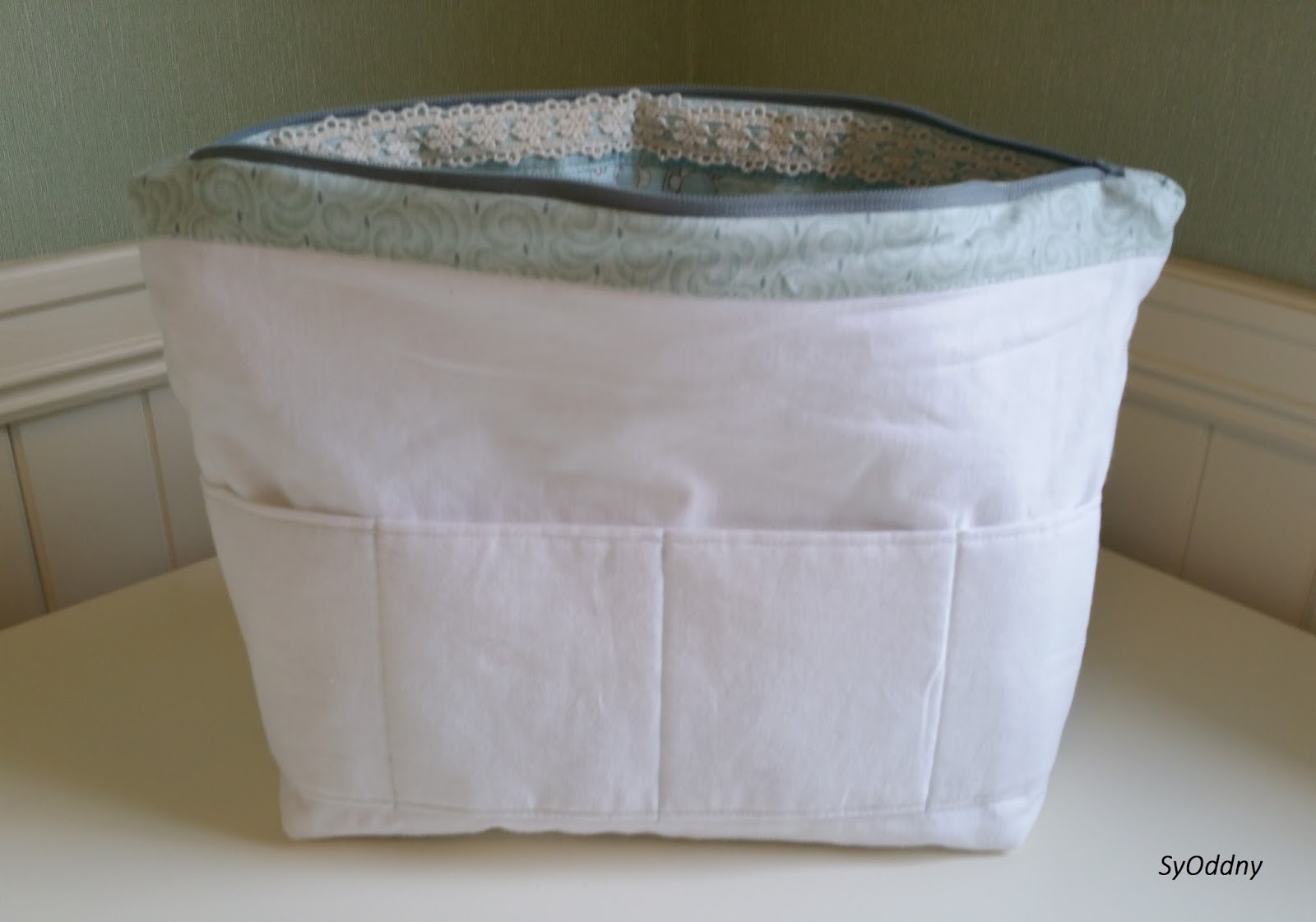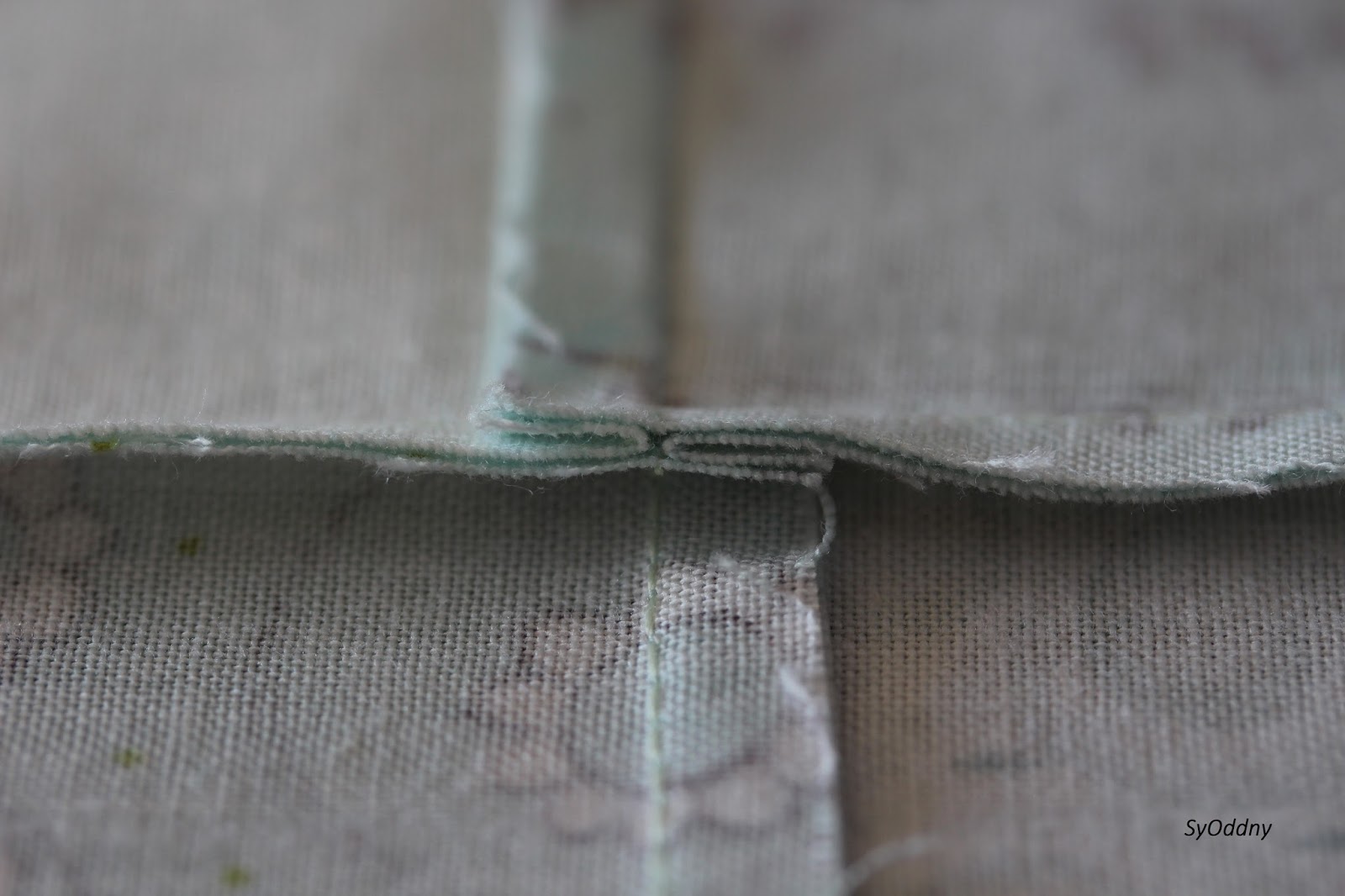 Sydde ein saum langs kanten og gjennom støttestoffet (det kvite).
