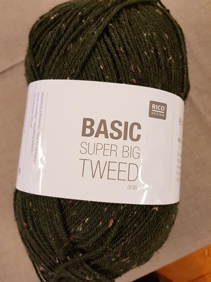 Eg brukte to nøster (400 g per. nøste) Basic Super Big Tweed, mørkegrå/svart.