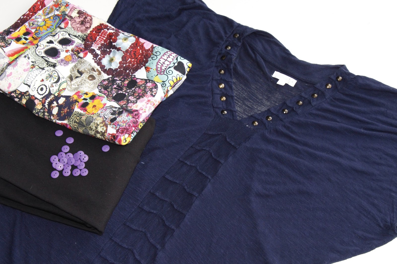 Bestemte meg for å bruke strech jersey stoff, som eg hadde kjøpt på Stoffbutikken.no ; Digitalprint Flowerskull og einsfarga svart jersey .