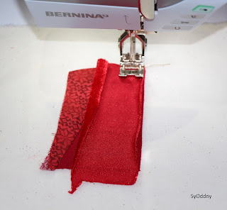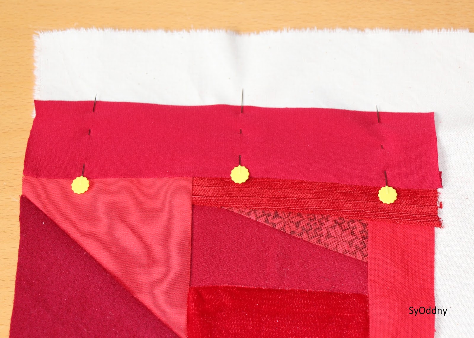 Og på det andre stykke stoff, skal du sy på langside nede.